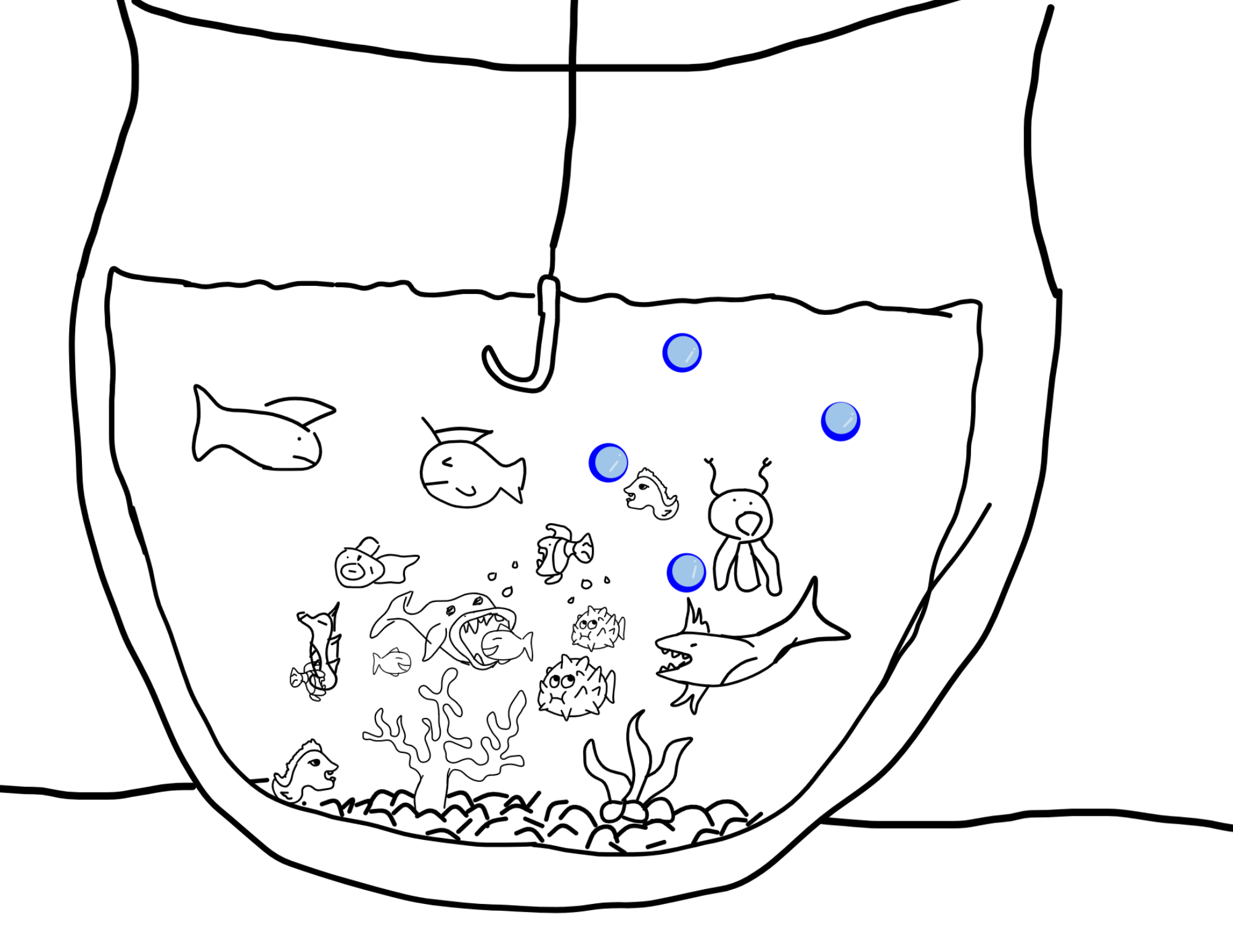 Vous disposez d'une quantité d'encre limitée pour poursuivre le dessin. Vous devrez dans la mesure du possible essayer de respecter la thématique "Fond marins".